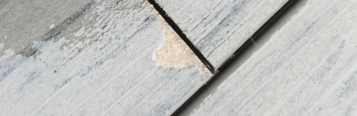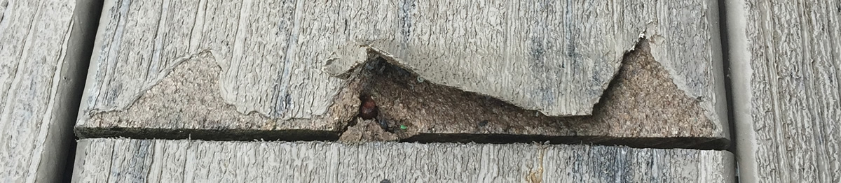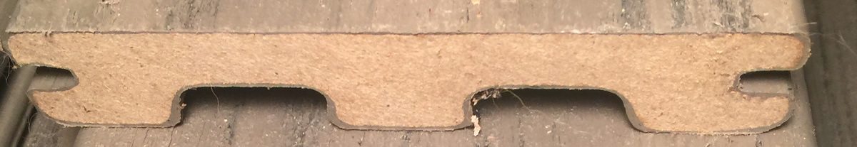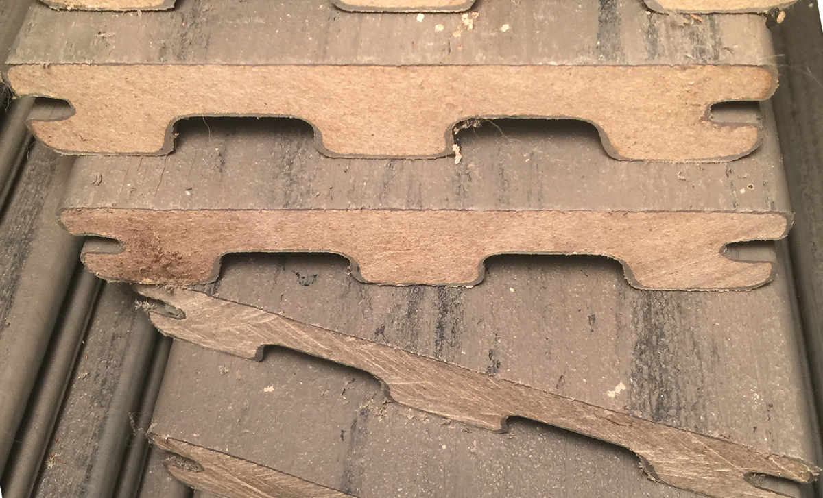 In a short time the color and texture layer of the decking started to delaminate from the core. The delamination was substantial in a couple of locations, but was also appearing on many of the planks.